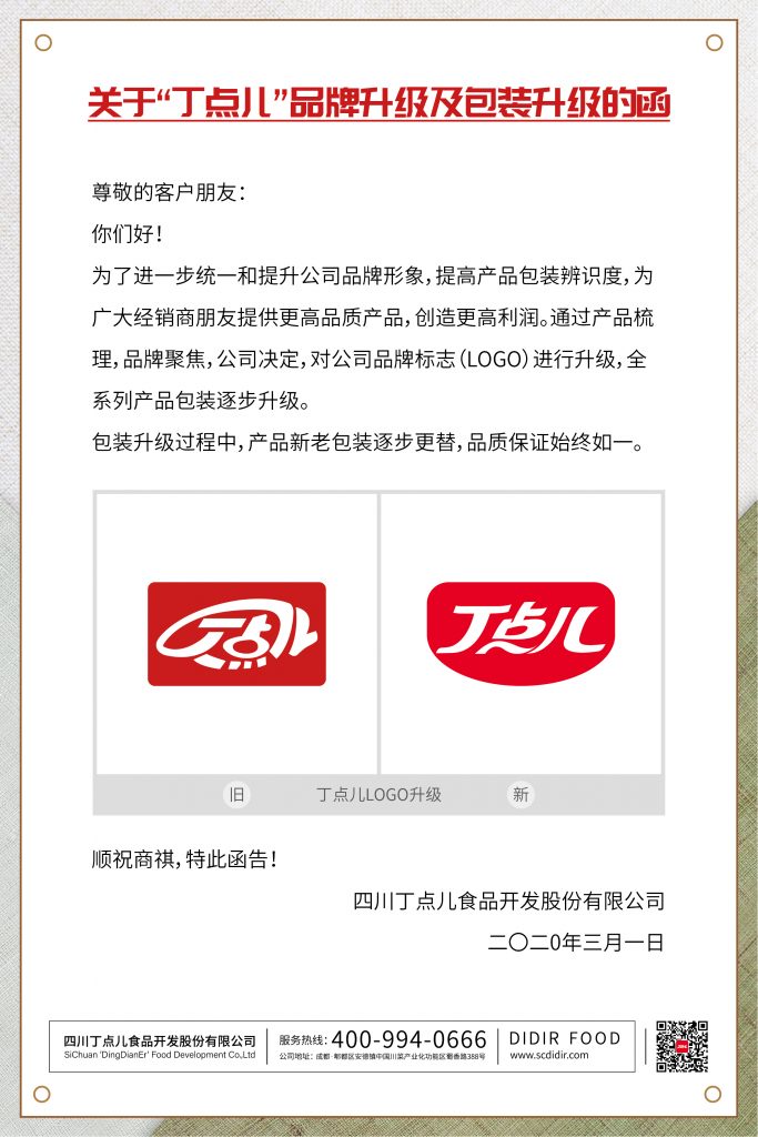 關(guān)于“丁點(diǎn)兒”品牌升級(jí)及包裝升級(jí)的函
