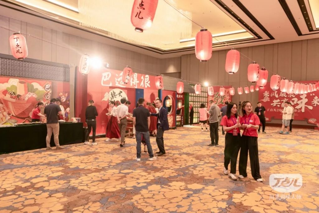 會場以丁點兒國風紅為主題色,將丁點兒品牌和傳統(tǒng)的國風相結合,以特色國潮風,通過搭建一條傳統(tǒng)美食街的新穎方式,展示丁點兒的川味和川派文化,同時賦能此次大會的傳播,為未能到場的經(jīng)銷商伙伴提供一場身臨其境的饕餮盛宴。