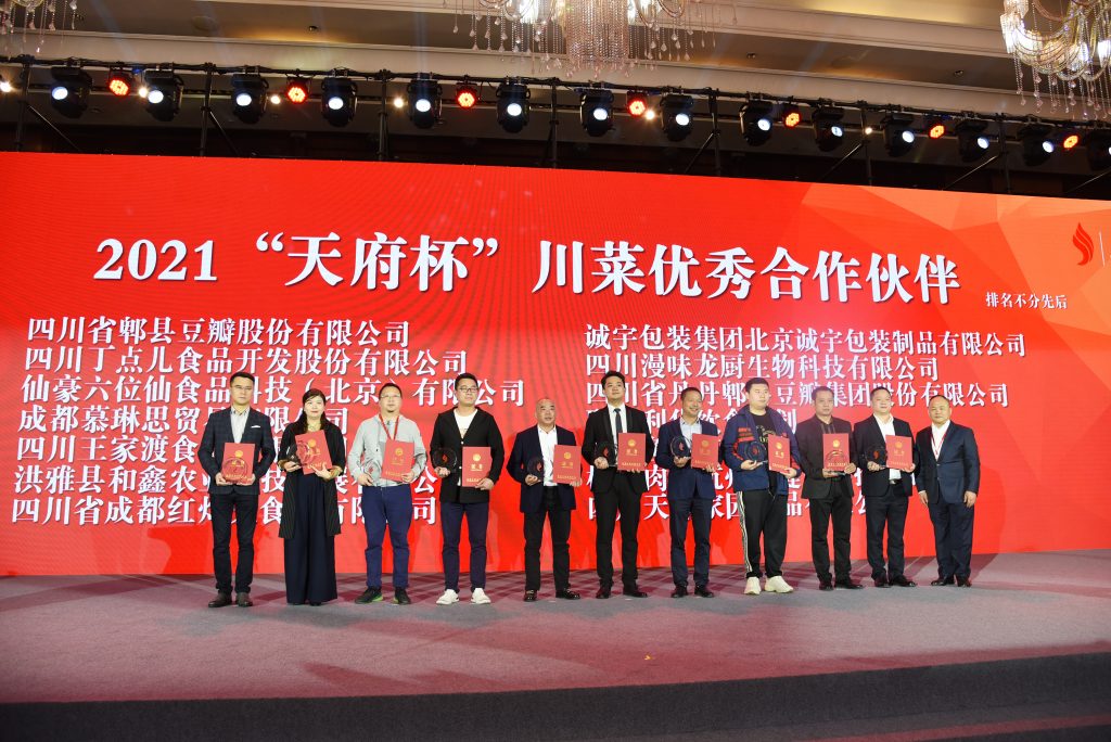 ? ? ? ?10月18-20日,由成都市郫都區(qū)人民政府、世界中餐業(yè)聯(lián)合會共同主辦的第四屆世界川菜大會在成都市郫都區(qū)隆重召開,丁點(diǎn)兒股份攜企業(yè)明星產(chǎn)品在會場亮相,并在2021“天府杯”世界川菜頒獎大會中獲得“‘天府杯’川菜優(yōu)秀合作伙伴”稱號。