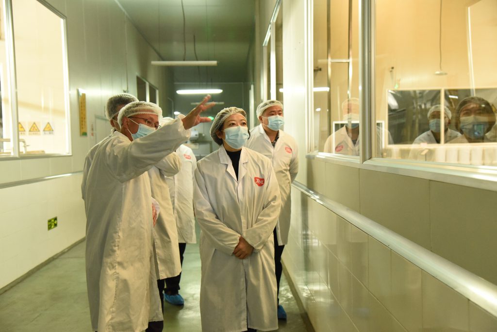 ? ? ? ? 在丁點(diǎn)兒股份常務(wù)副總經(jīng)理張毅等相關(guān)人員的陪同下,袁蘭蘭一行參觀了企業(yè)生產(chǎn)車間,現(xiàn)場(chǎng)豐富的產(chǎn)品種類、井然的生產(chǎn)秩序、干凈的生產(chǎn)環(huán)境給大家留下了深刻印象。