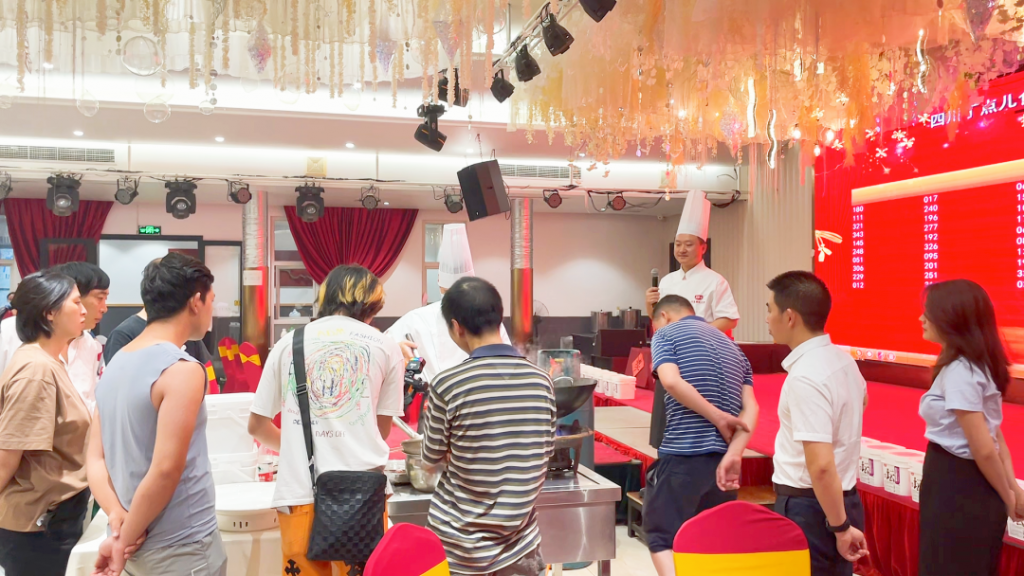 ? ? ? ?品鑒會(huì)現(xiàn)場(chǎng),丁點(diǎn)兒股份技術(shù)中心應(yīng)用培訓(xùn)部副部長(zhǎng)陳證宇攜手其助手李永龍?jiān)谄疯b會(huì)上應(yīng)用丁點(diǎn)兒特色產(chǎn)品,帶來(lái)了4道特色川式美味菜品并就相關(guān)產(chǎn)品深度延展應(yīng)用作了分享。