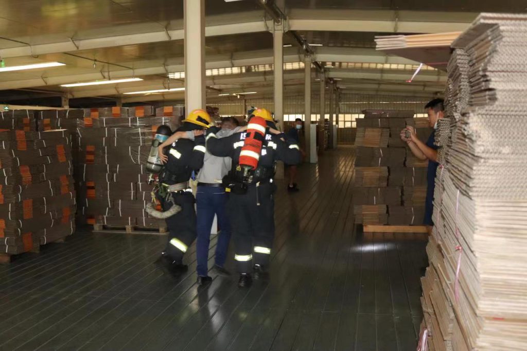 ? ? ? ?演練模擬丁點兒股份成品倉庫內(nèi)出現(xiàn)火情并迅速向周圍擴散蔓延,導(dǎo)致1名職工被困成品倉庫。