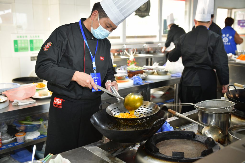 大賽吸引了眾多餐飲行業(yè)烹飪高手參與?,F(xiàn)場,參賽選手全神貫注,互相切磋技藝,共同展示川菜文化獨特魅力的同時,紛紛使出看家本領,爭取拔得頭籌。煎、炸、炒、煮等烹飪方式輪番上陣,讓人眼花繚亂。