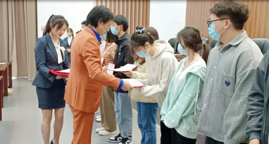頒獎(jiǎng)儀式上,丁點(diǎn)兒股份任康董事長為獲獎(jiǎng)的優(yōu)秀學(xué)生頒發(fā)了獎(jiǎng)學(xué)金證書,并對(duì)獲獎(jiǎng)同學(xué)表示祝賀。