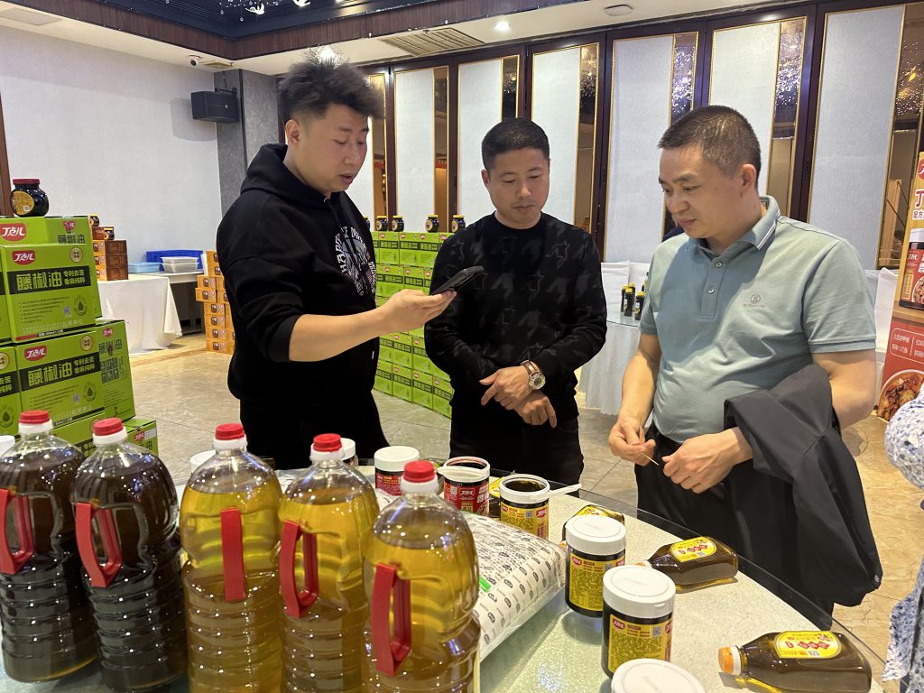 品嘗過(guò)用丁點(diǎn)兒藤椒油、干鍋醬、椒麻雞汁、金湯酸菜醬等特色川調(diào)制作的藤椒雞片、干鍋鮑魚(yú)、虎椒拌鮮筍等創(chuàng)新菜品后,大家對(duì)丁點(diǎn)兒產(chǎn)品的味型、品質(zhì)贊不絕口,紛紛前往產(chǎn)品展示區(qū)咨詢了解。