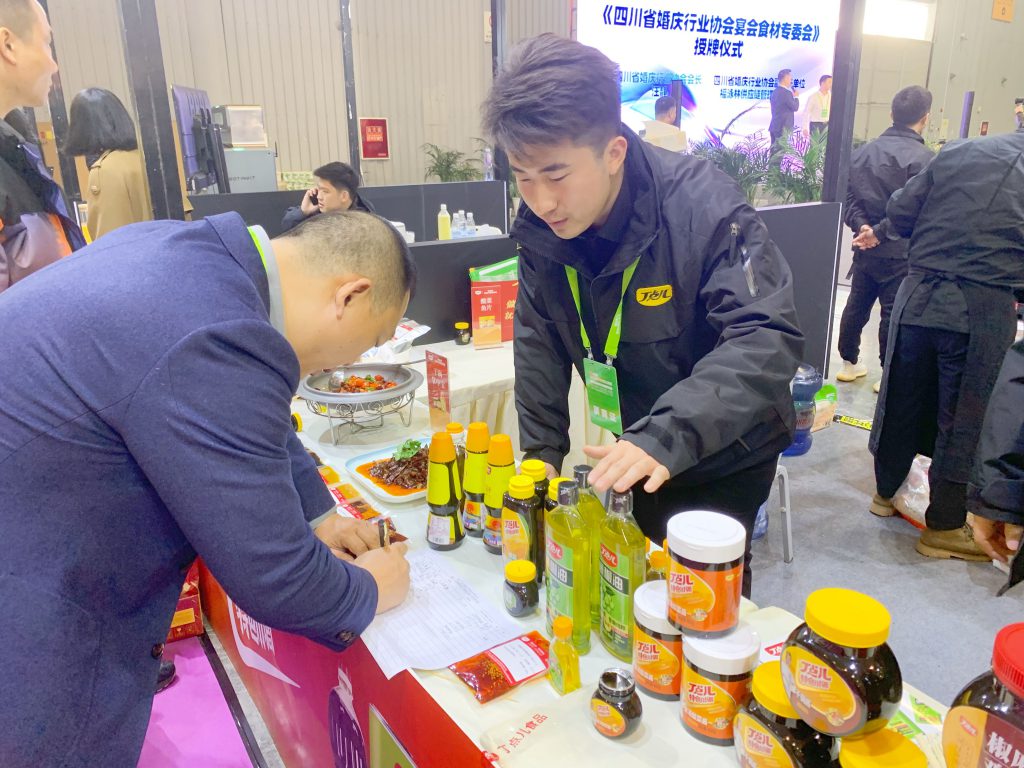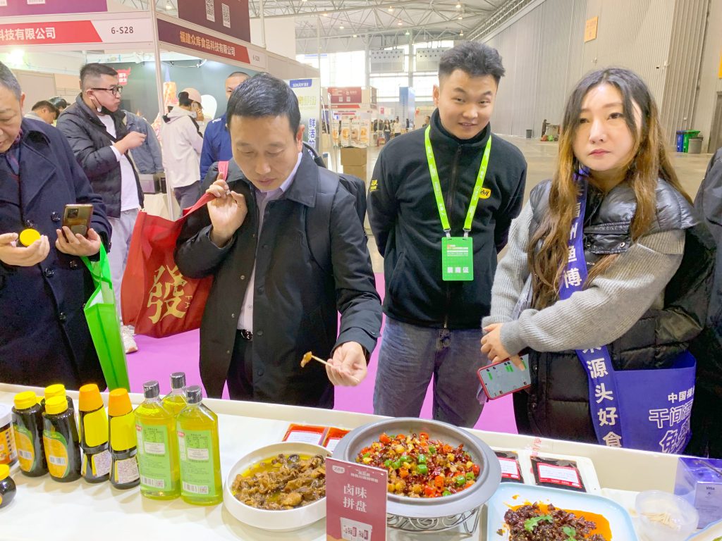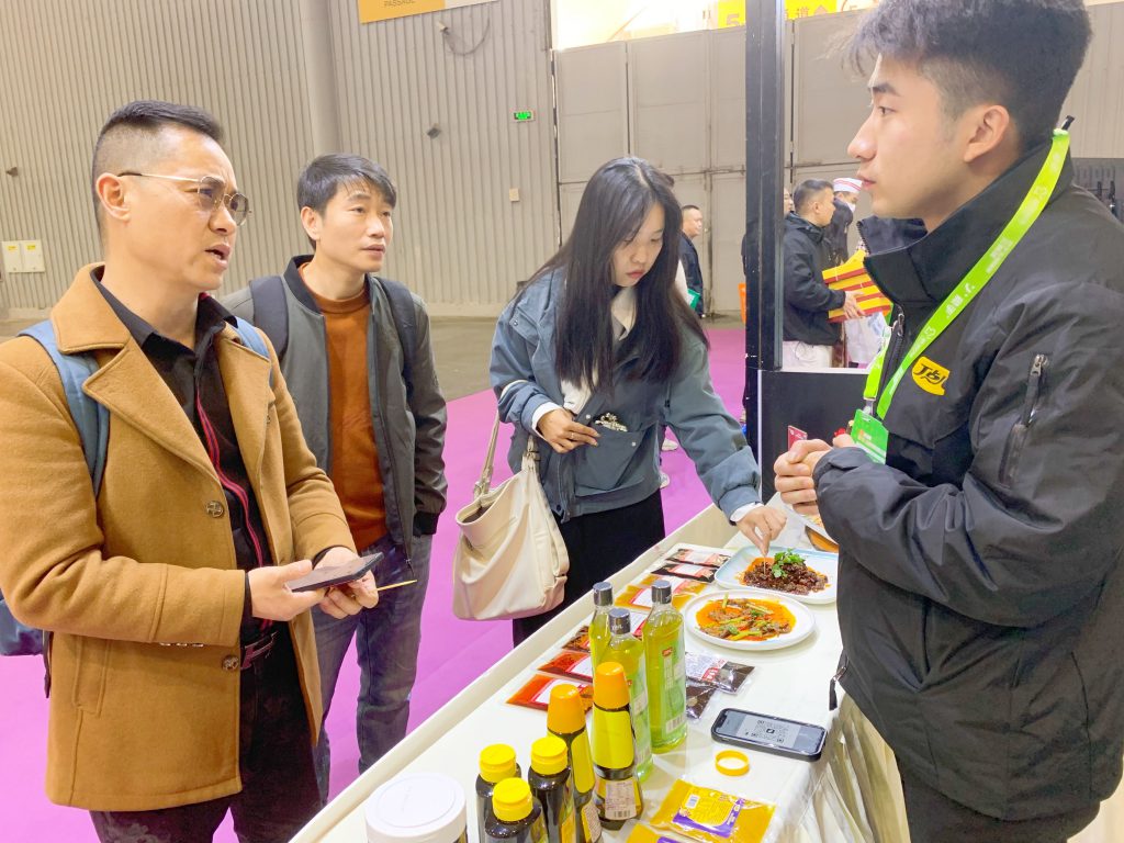 用丁點(diǎn)兒干鍋醬、椒麻雞汁、老壇酸菜醬等烹制的干鍋掌中寶、川式椒麻雞、酸菜魚片等菜品色香味俱全,為參展觀眾帶來了看得見、聞得到、吃得到的美食體驗(yàn)?,F(xiàn)場試吃后,許多觀眾紛紛向公司業(yè)務(wù)經(jīng)理咨詢、了解,尋求合作。