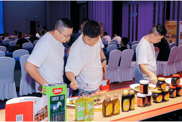 在丁點(diǎn)兒高品質(zhì)特色川調(diào)產(chǎn)品展示區(qū),椒麻雞汁、干鍋醬、麻得倒純萃花椒油等豐富的產(chǎn)品吸引了眾多參會(huì)人員駐足詢問(wèn)了解。口味穩(wěn)定,快速出餐,可優(yōu)化菜品成本等產(chǎn)品優(yōu)勢(shì),引得大家紛紛咨詢合作,用丁點(diǎn)兒青花椒麻辣醬烹飪的翡翠鮮椒雞更是獲得了品鑒人員的一致好評(píng)。