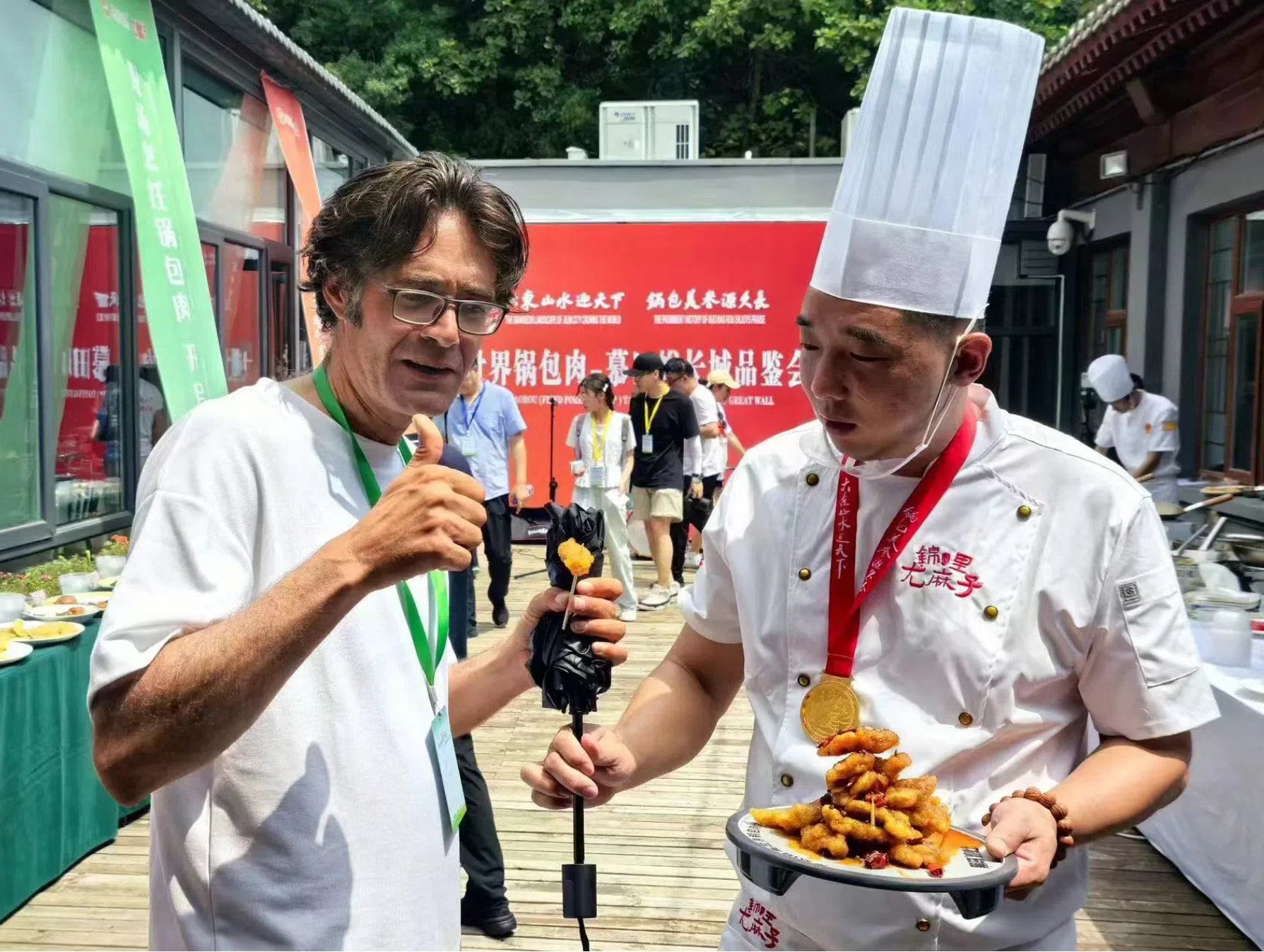 在保留傳統(tǒng)鍋包肉酥脆口感的基礎(chǔ)上,閆正龍大師突破常規(guī),使用丁點兒椒麻雞汁、麻辣雞鮮等高品質(zhì)特色川調(diào)烹制出椒麻鍋包肉和麻辣鍋包肉,為鍋包肉賦予前所未有的麻、辣、鮮、香。兩款鍋包肉既有傳統(tǒng)風(fēng)味的延續(xù),又有現(xiàn)代口味的創(chuàng)新,得到了現(xiàn)場海內(nèi)外嘉賓及游客的如潮好評!