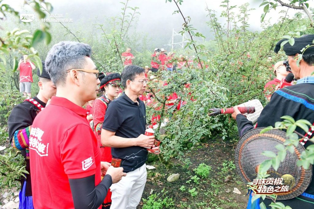 郁郁蔥蔥的花椒林前,丁點(diǎn)兒食品董事長(zhǎng)任康、川菜大師蘭明路等嘉賓出席了摘椒儀式,輕輕摘下每一顆成熟飽滿的貢椒,動(dòng)作中充滿了對(duì)這片土地的敬畏與感激。