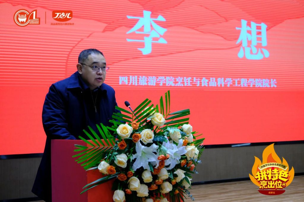 丁點兒食品董事長任康,中國烹飪協(xié)會副會長、名廚專業(yè)委員會主席孫曉春,四川旅游學(xué)院黨委常委、副校長王沖,四川省美食家協(xié)會會長麥建玲,四川省烹飪協(xié)會執(zhí)行會長高樸,四川省財貿(mào)輕化紡工會常委、成都市美食業(yè)工會主席王獻章,成都餐飲同業(yè)工會會長袁小然等相關(guān)領(lǐng)導(dǎo)出席了大賽開幕儀式,并紛紛登臺致辭,對本次大賽給予了高度評價與深切期望。