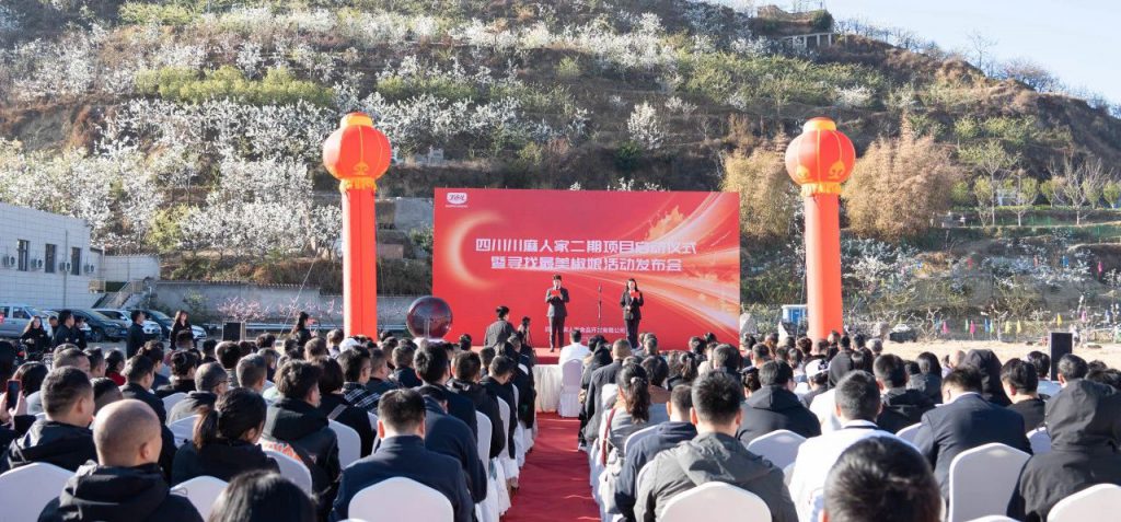 為進(jìn)一步提升產(chǎn)能,勾勒“小花椒轉(zhuǎn)動大產(chǎn)業(yè)”的振興藍(lán)圖,3月25日上午,川麻人家舉行了建設(shè)二期項(xiàng)目啟動儀式暨尋找最美椒娘發(fā)布會。