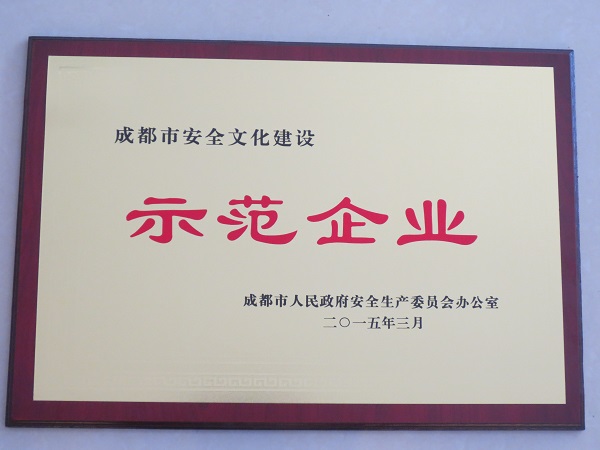 2015成都市安全文化示范企業證書